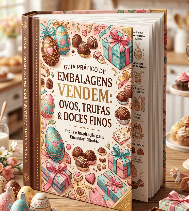 É um eBook pensado para quem deseja valorizar seus doces e aumentar as vendas. Nele você aprenderá ideias criativas de embalagens para ovos de Páscoa, trufas e doces finos, além de dicas de apresentação que encantam os clientes e fazem seu produto parecer ainda mais profissional e irresistível.